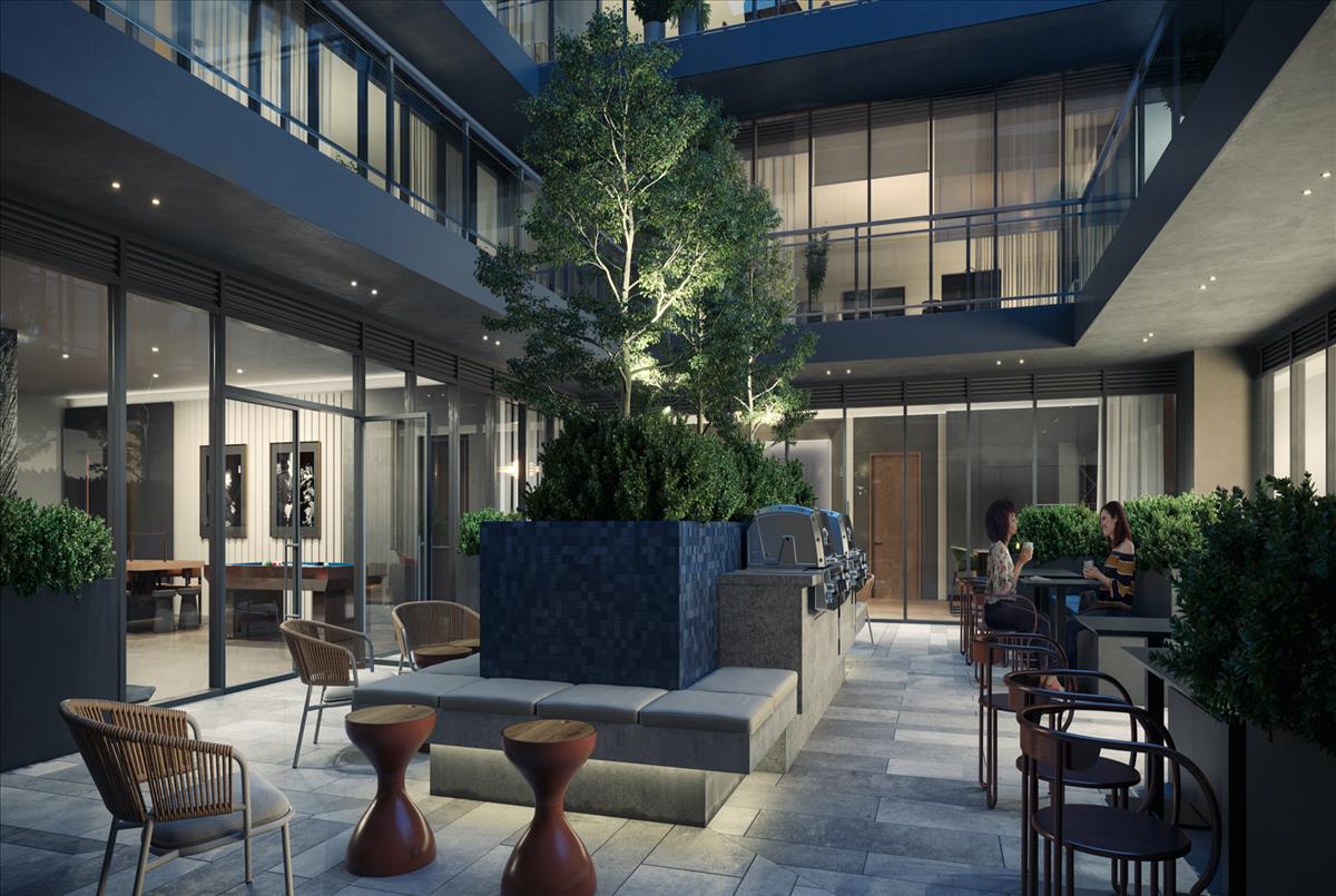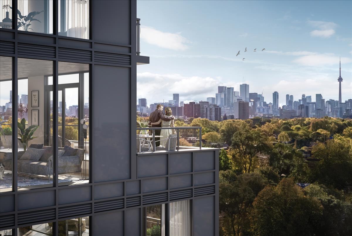 Classic black and white cuts a striking figure on Dupont Street. The contemporary architecture rises 9 storeys, transitioning from expansive glass at street level to crisp white precast and back again. The stepped design creates enviable opportunities for sun-filled terraces that overlook the city.